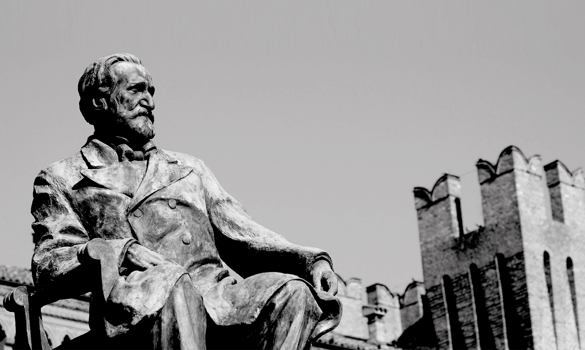 L’immagine del Concorso Internazionale Voci Verdiane Città di Busseto è un particolare del monumento in bronzo a Giuseppe Verdi, opera dello scultore Luigi Secchi, inaugurato nel 1913 nella piazza centrale di Busseto intitolata al Maestro.