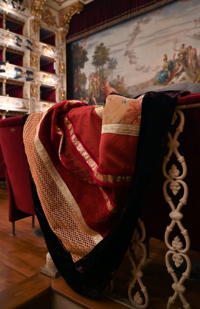 Un elegante telo per impreziosire un angolo della tua casa, per coprire una poltrona o semplicemente per scaldarsi nelle sere d’inverno. Realizzato accostando scampoli dei preziosi tessuti utilizzati nei laboratori di Sartoria del Teatro Regio per confezionare i costumi di scena, ogni telo, nel suo disegno cromatico e geometrico, è oggetto unico e irripetibile.