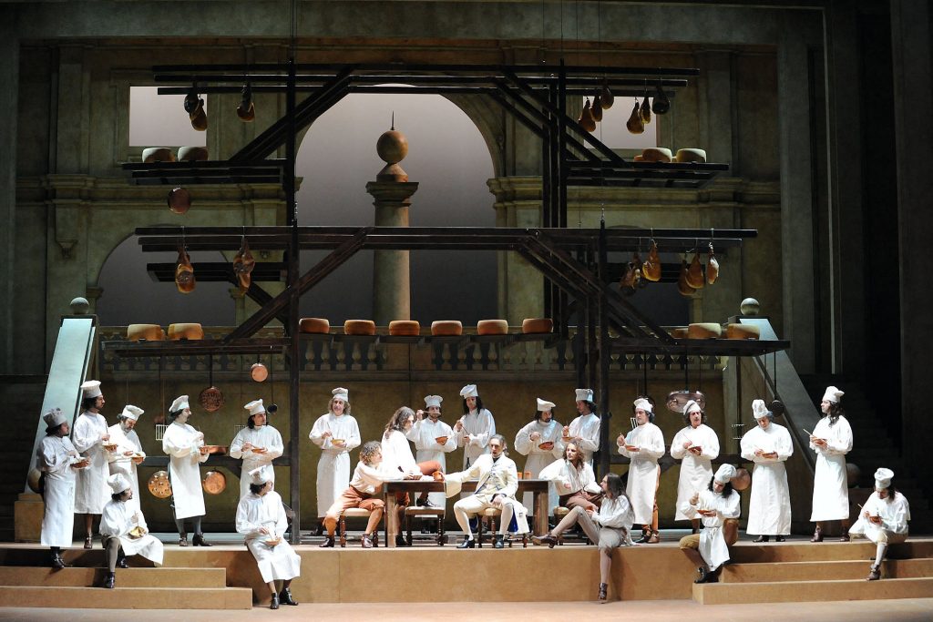 Nel 1980 per la prima volta al Regio cura, oltre a costumi e scene, anche la regia, con i Pêcheurs des perles di Bizet, e da allora la sua presenza in questi tre ruoli diventa un appuntamento periodico e sempre più affezionato con il pubblico del Regio: Rinaldo di Händel, Il cappello di paglia di Firenze su musiche di Nino Rota, Turandot, fino al memorabile ritorno di Un giorno di regno o Il finto Stanislao di Verdi nel 1997, con la direzione musicale di Maurizio Benini e un cast composto tra gli altri dalle carismatiche Anna Caterina Antonacci e Cecilia Gasdia: nella cornice settecentesca dell’opera Pizzi guida i personaggi in una regia funzionale, elegante e ironica, spostando la vicenda a Parma, con tanto di forme di parmigiano in scena, sempre nell’intento di costruire il clima di una musical comedy. Questo amato allestimento ritornerà al Regio nel 2010 e al Teatro Giuseppe Verdi di Busseto per il Festival Verdi 2018, nell’adattamento di Massimo Gasparon.