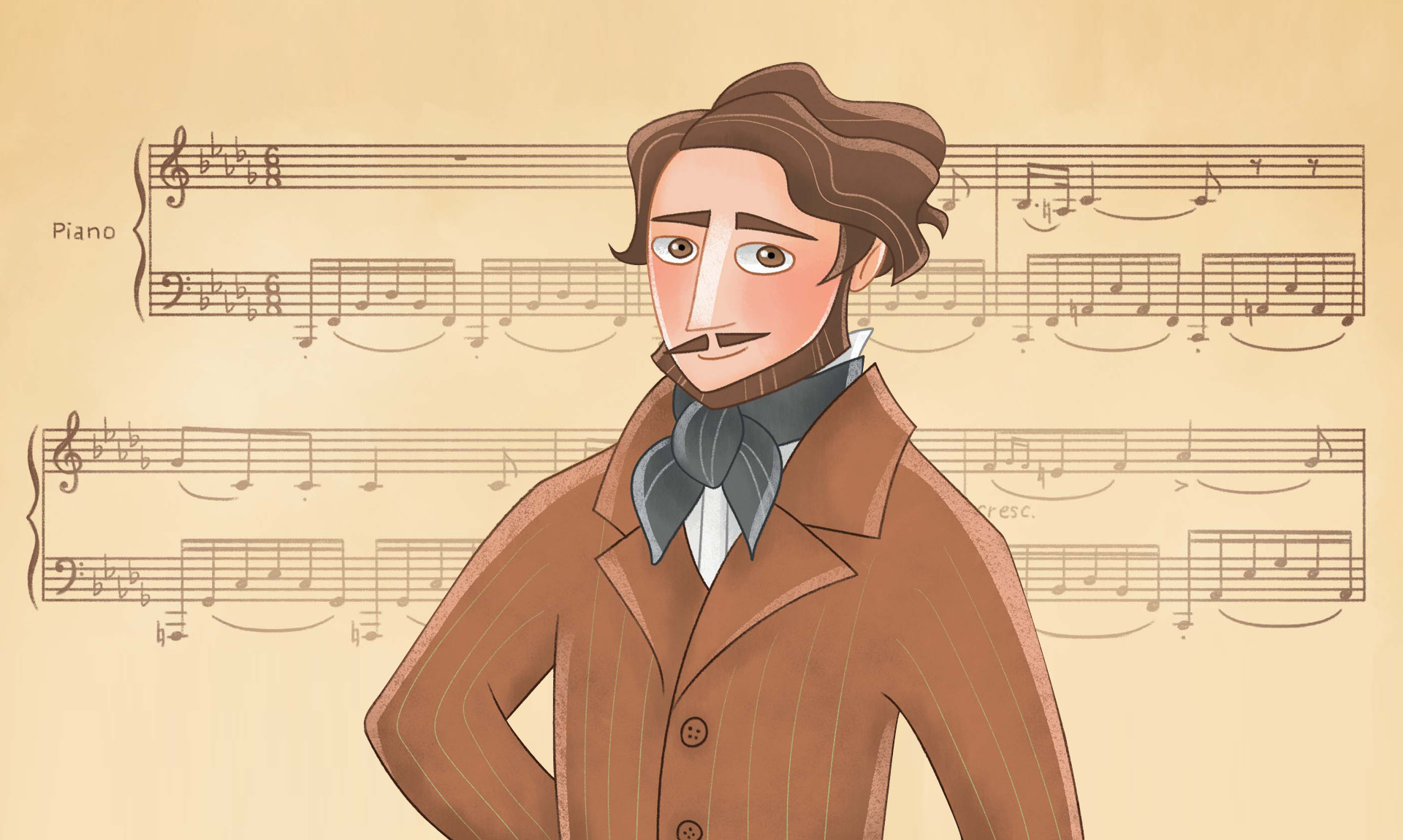 L’infanzia vissuta in povertà a Bergamo, l’incontro con il compositore che divenne più che un suo mentore, un secondo padre, Giovanni Simone Mayr, i primi successi ottenuti a poco più di vent’anni a Venezia, e poi a Roma, fino all’incontro con l’impresario Barbaja e il trionfo a Napoli, con la Lucia di Lammermoor. La fama di Donizetti, compositore d’opera prolifico e amatissimo, fiorita nell’età dell’oro dell’opera, era diffusa in tutti gli strati della società che il compositore, di bell’aspetto, era riuscito a conquistare anche grazie a un talento di canzoniere, tutt’ora poco conosciuto. La sua vita non fu certo priva di momenti drammatici e dolorosi – e “i bambini hanno bisogno di sapere che anche nelle vite più straordinarie ci sono dei fallimenti o comunque dei periodi difficili, spiega l’autrice, Cristina Bersanelli, e che ogni medaglia ha suo il rovescio”. E così anche per Donizetti arrivarono giorni tristi, funestati dalla perdita della bella moglie, Virginia, e dei figli, che culminarono con il trasferimento a Parigi e il rientro a Bergamo, dove il compositore finì i suoi ultimi giorni di vita, attorniato da una ristretta cerchia di amici.